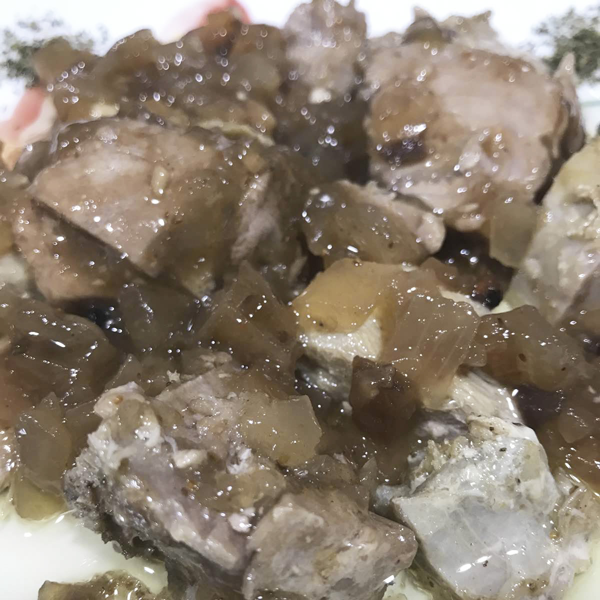 Exquisito atún fresco elaborado con vino dulce al pedro ximenez y una suave guarnición de cebolla caramelizada con higos. Elaboración 100% artesanal.