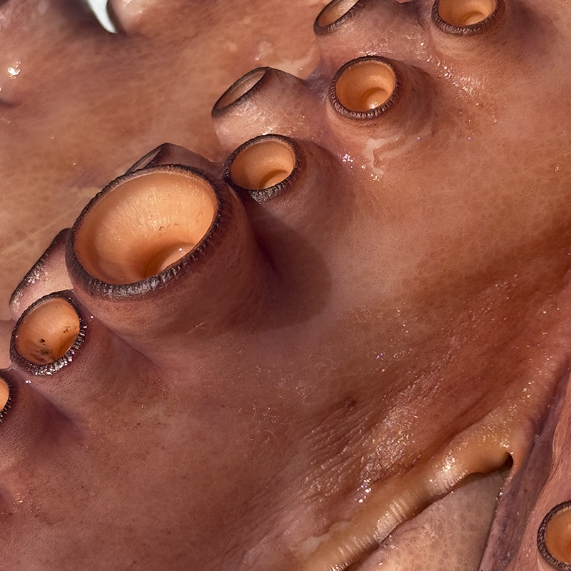 El pulpo es un molusco cefalópodo con 8 tentáculos y sin concha interna. Con dos filas de ventosas en cada tentáculo. El nuestro en concreto proviene de la costa de Huelva y lo vendemos en Rejos sueltos ya cocidos o entero (en este caso el precio es por kilo).